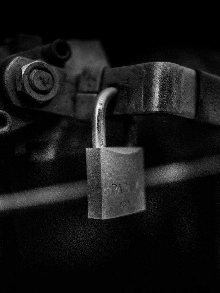 Finding beauty in the details. The rugged texture and stark contrasts of this old padlock make for a compelling black and white