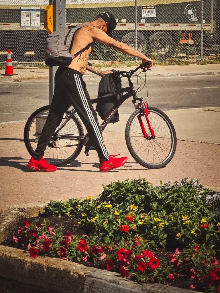 July 23, 2025 Red kicks and a trusty steed Ready for whatever the day brings. Share this:Tweet Click to share on Threads (Opens in new window) Threads Share on TumblrLike Loading... Related