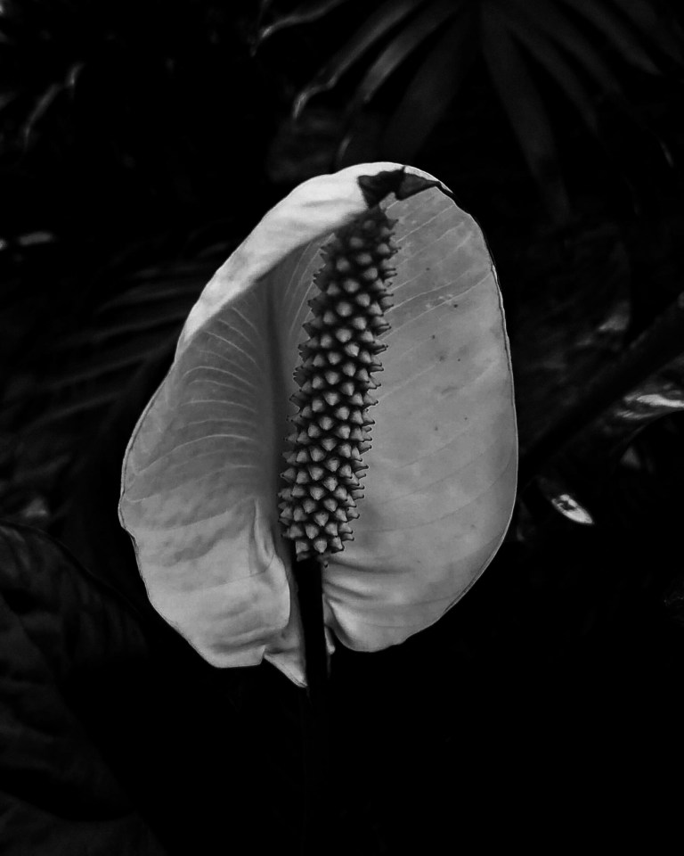 This stunning black and white capture of a peace lily highlights the intricate textures and serene beauty of this plant. There’s something timeless about the simplicity and grace of nature, even when stripped of color.