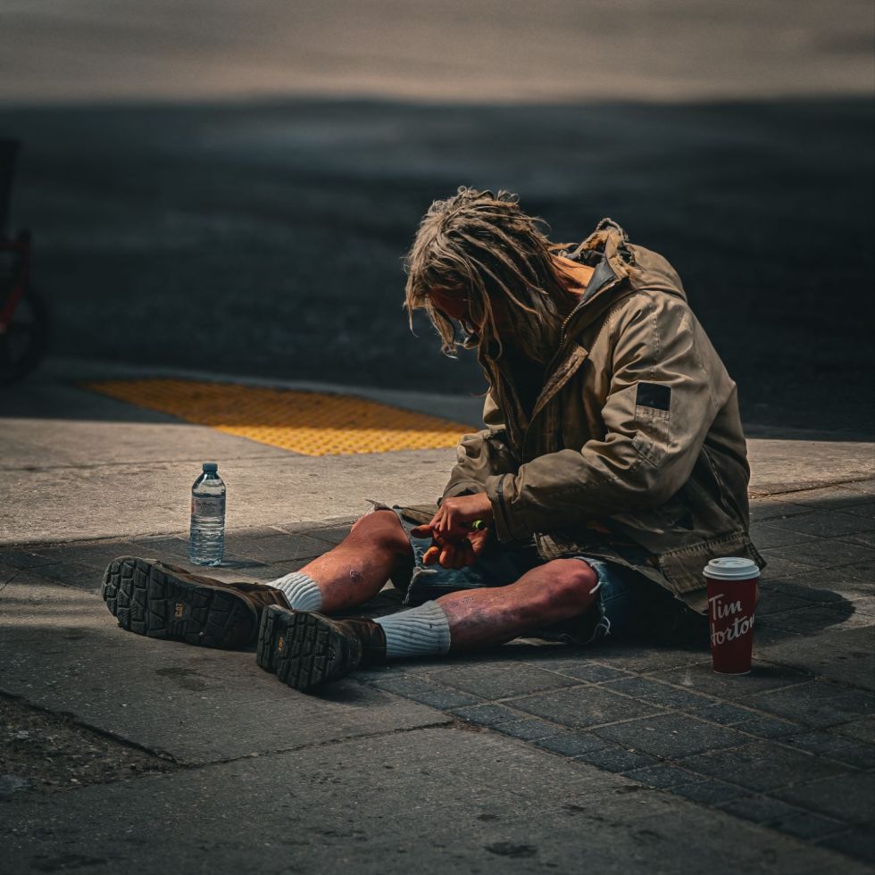 Sitting on the concrete, bathed in the harsh light